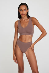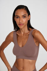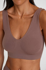 Un top suave y sin costuras con tirantes anchos hecho de microfibra sedosa. El modelo tiene un escote en forma de V y una banda elástica ajustada en la parte inferior, que resalta aún más el pecho. El top tiene inserciones texturizadas en los laterales y en el centro del pecho para un ajuste cómodo. Será una gran opción para todos los días y combina de maravilla con cárdigans y chaquetas de chándal deportivas.