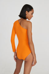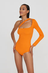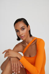 Le body à la coupe originale et au décolleté asymétrique est en microfibre douce. La bretelle encadrant le décolleté peut être utilisée comme accent dans la zone du décolleté ou placée dans le dos. Ce vêtement est créé à l'aide d'une technologie sans couture moderne, et il souligne parfaitement la silhouette. La base courte du body avec une couverture complète a une fermeture pratique avec trois crochets en métal. Combinez le body avec un pantalon palazzo ou des jupes en tissu fluide ou portez-le comme un haut indépendant.