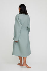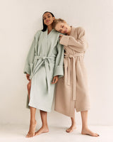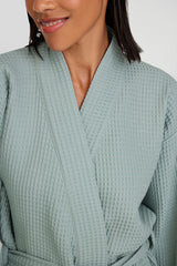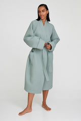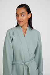 Le peignoir de bain gaufré est un style midi enveloppant classique. Ceinture amovible. La robe est en coton naturel; il est respirant et absorbe l'excès d'humidité, de sorte que vous vous sentirez à l'aise et confortable en le portant quelles que soient la température et l'humidité. Le peignoir ne raidit pas le corps grâce au tissu léger et à la coupe ample.