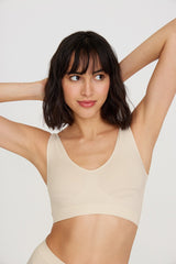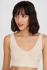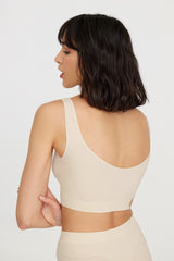 Le top doux et sans couture à bretelles larges est fabriqué en microfibre soyeuse. Le modèle a l'encolure en V et l'élastique épais en bas qui souligne en plus le buste. Le top a les insertions facturées sur les côtés et au centre du buste pour un ajustement confortable. Ce sera une excellente variante quotidienne et se combine bien avec des cardigans et des vestes de sport.