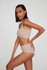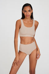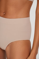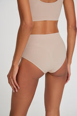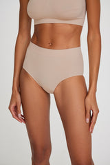Culottes comodi ed eleganti a vita alta in microfibra morbida. Le mutande non hanno cuciture extra per un maggiore comfort. Questo modello ha un tassello morbido igienico. I lati larghi rendono le mutande i più adatti per l'uso quotidiano. Il modello con glutei chiusi e ritagli abbastanza profondi per le gambe non interferisce con la libertà di movimento e sembra bello su qualsiasi figura.